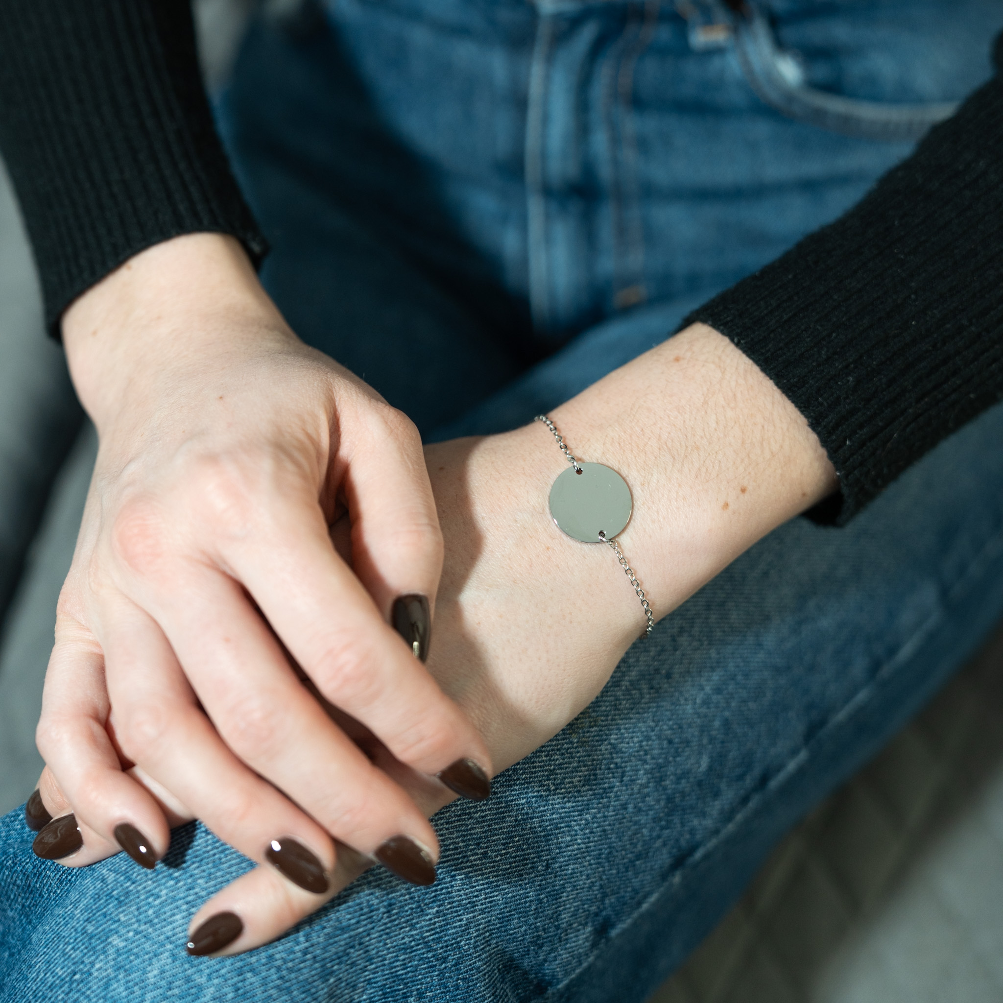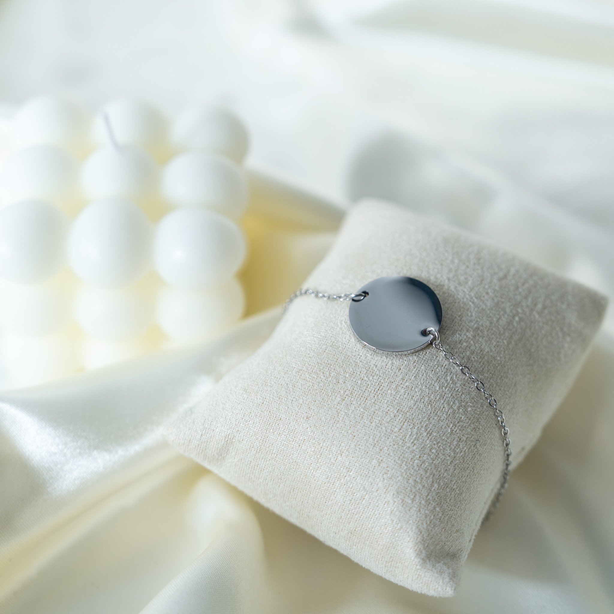 Son pendentif rond de 20 mm, suspendu à une chaîne fine et délicate, offre un espace idéal pour accueillir une gravure unique : une initiale, un mot doux, une date importante ou même une image symbolique. Chaque détail a été pensé pour mettre en valeur l’essentiel, sans superflu.